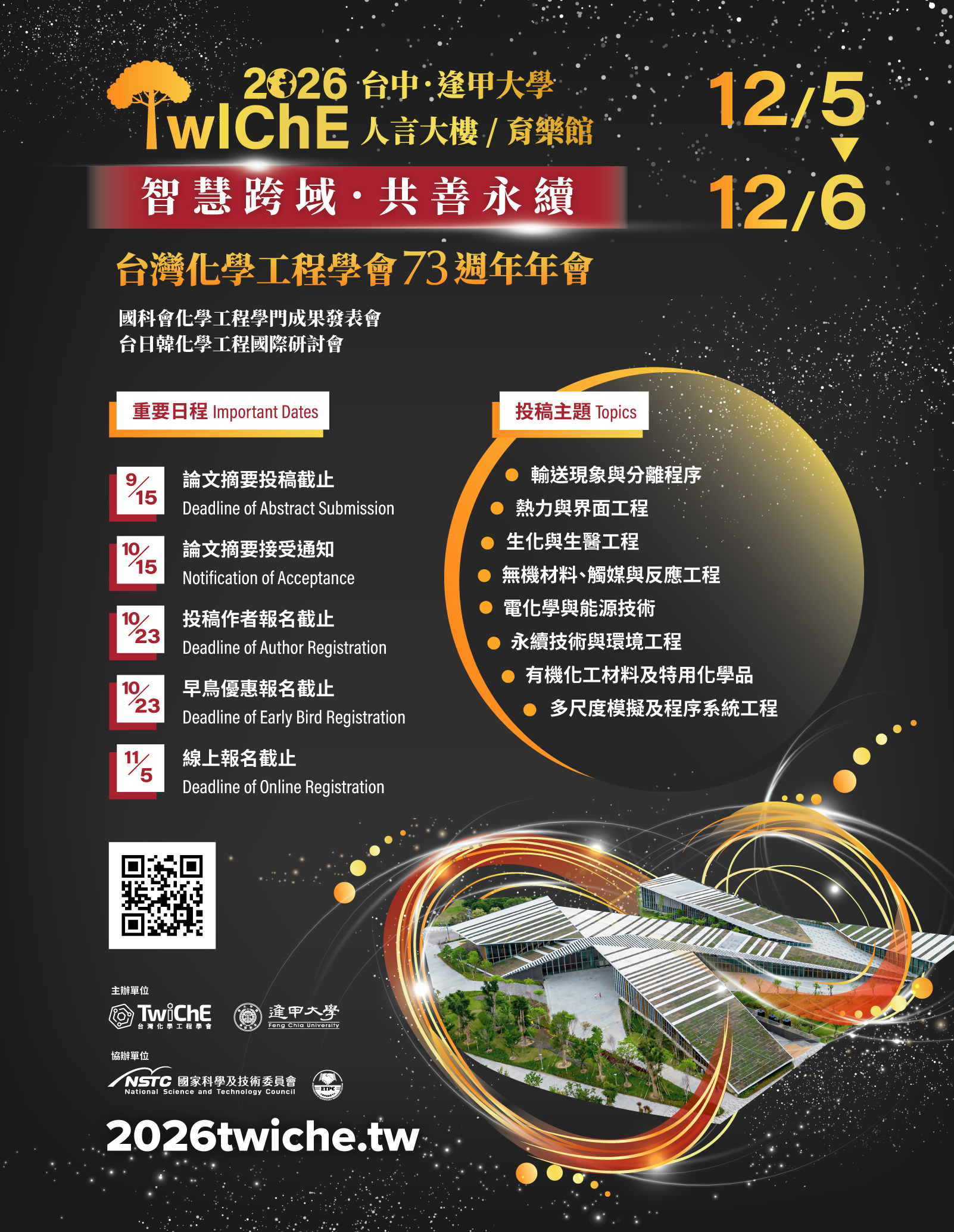 台灣化學工程學會73週年年會秘書處 Secretariat of 2026 TwIChE